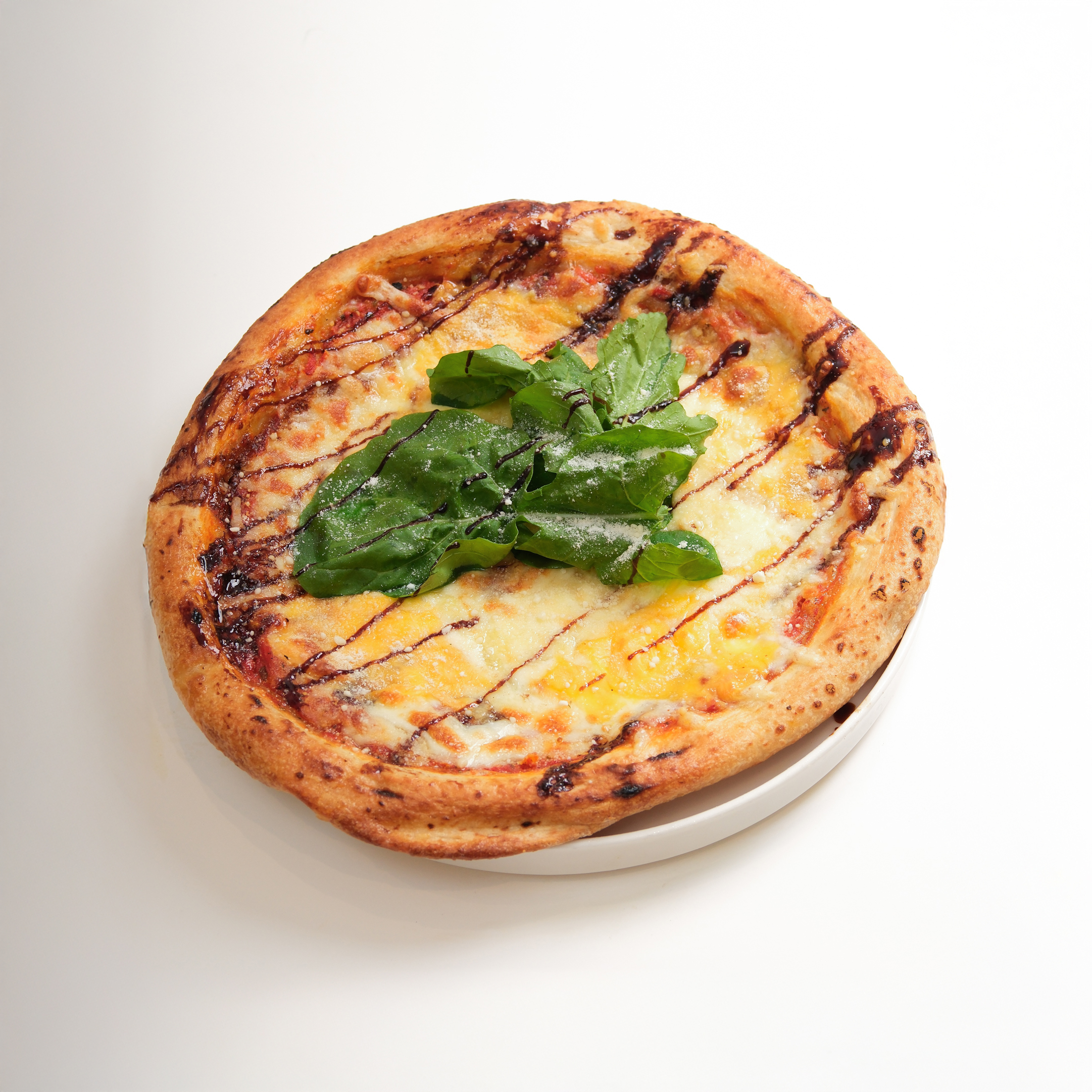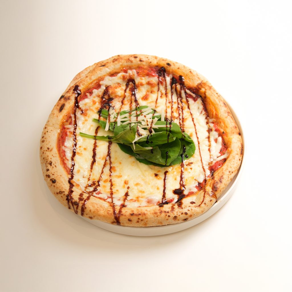 Ekşi Mayalı Pizza Hamuru, Domates Sos, Mozerella, Parmesan, Roka, Balzamik