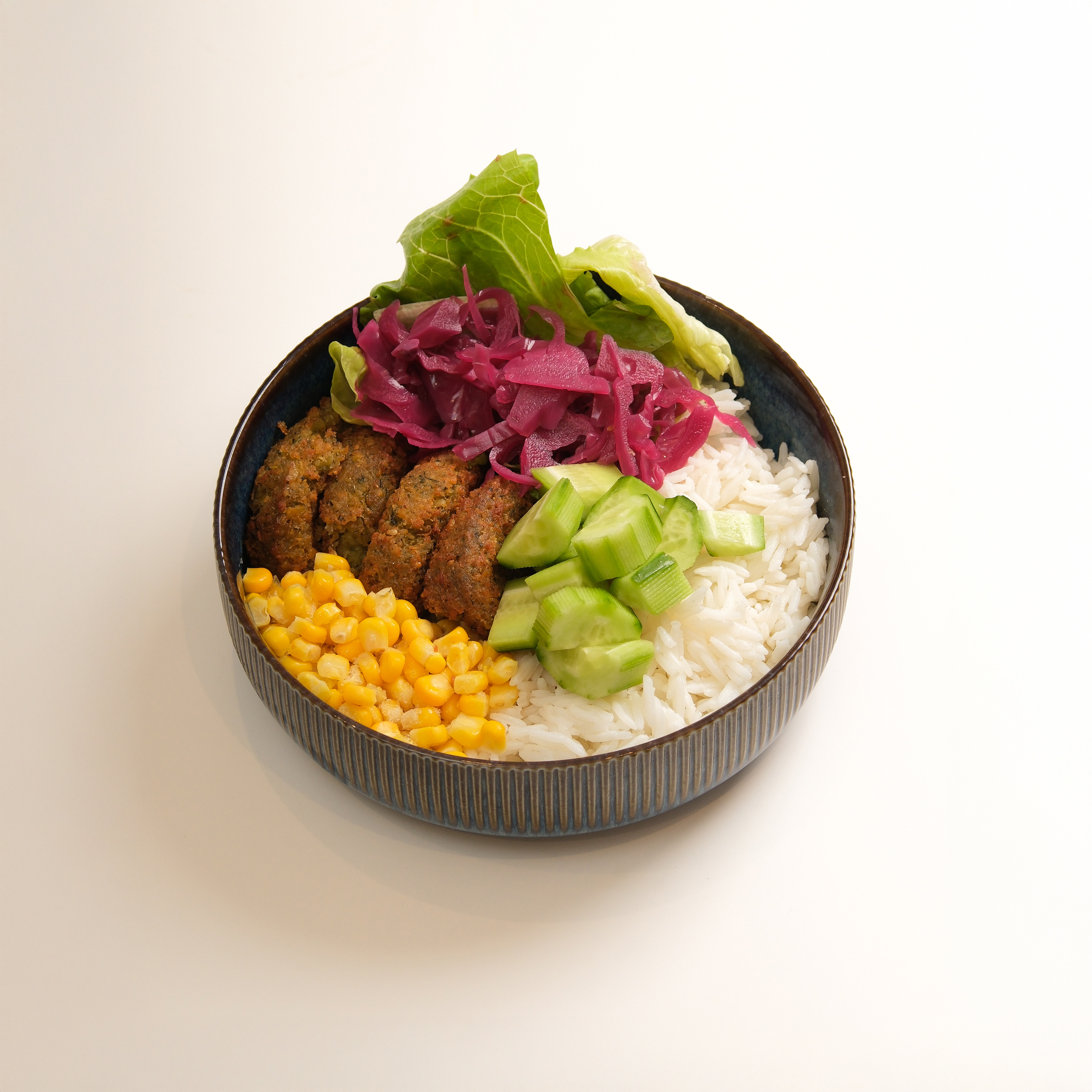 Basmati, Falafel, Marul, Kırmızı Lahana Turşusu, Mısır, Salatalık