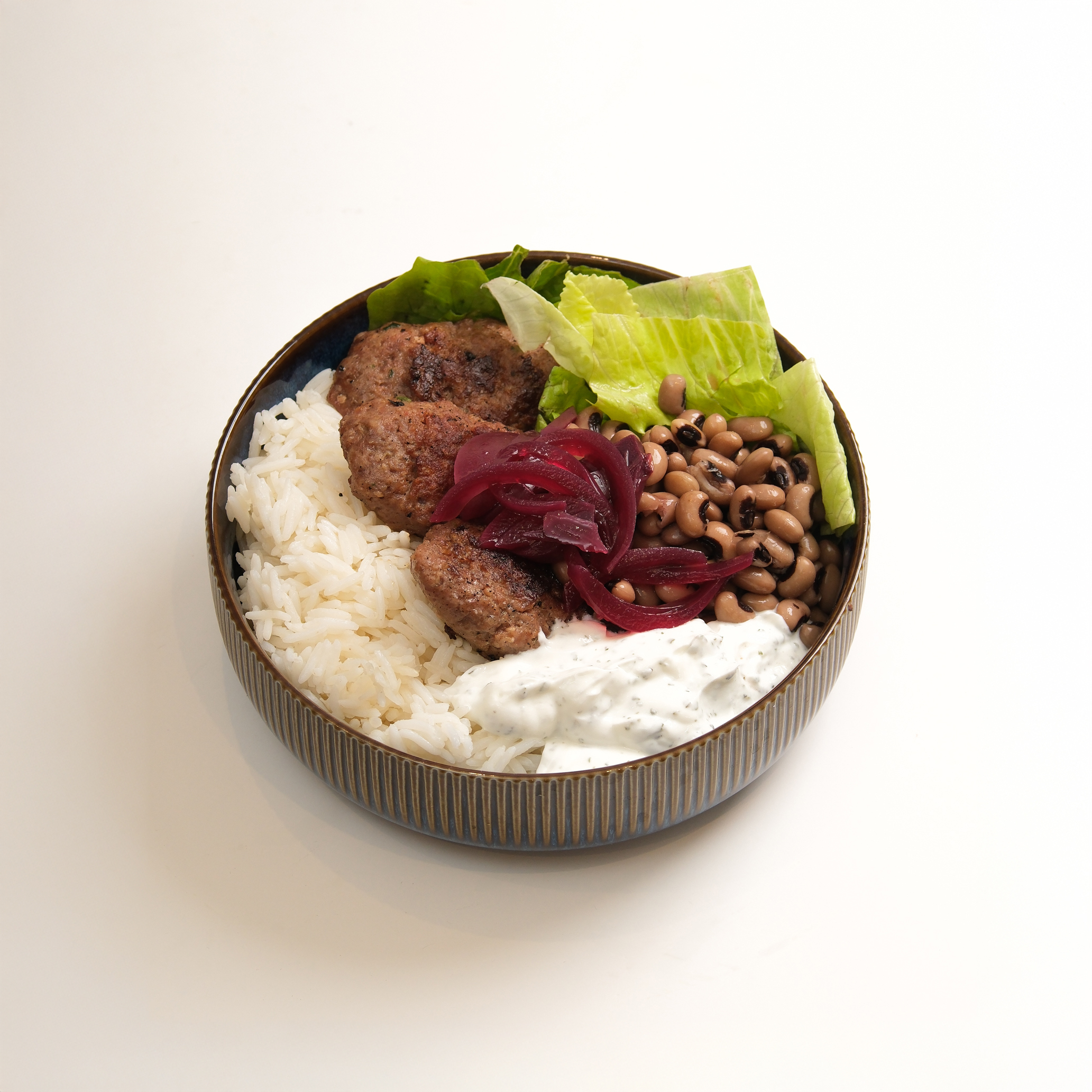 Köfte, Basmati, Börülce, Marul, Haydari, Soğan Turşusu