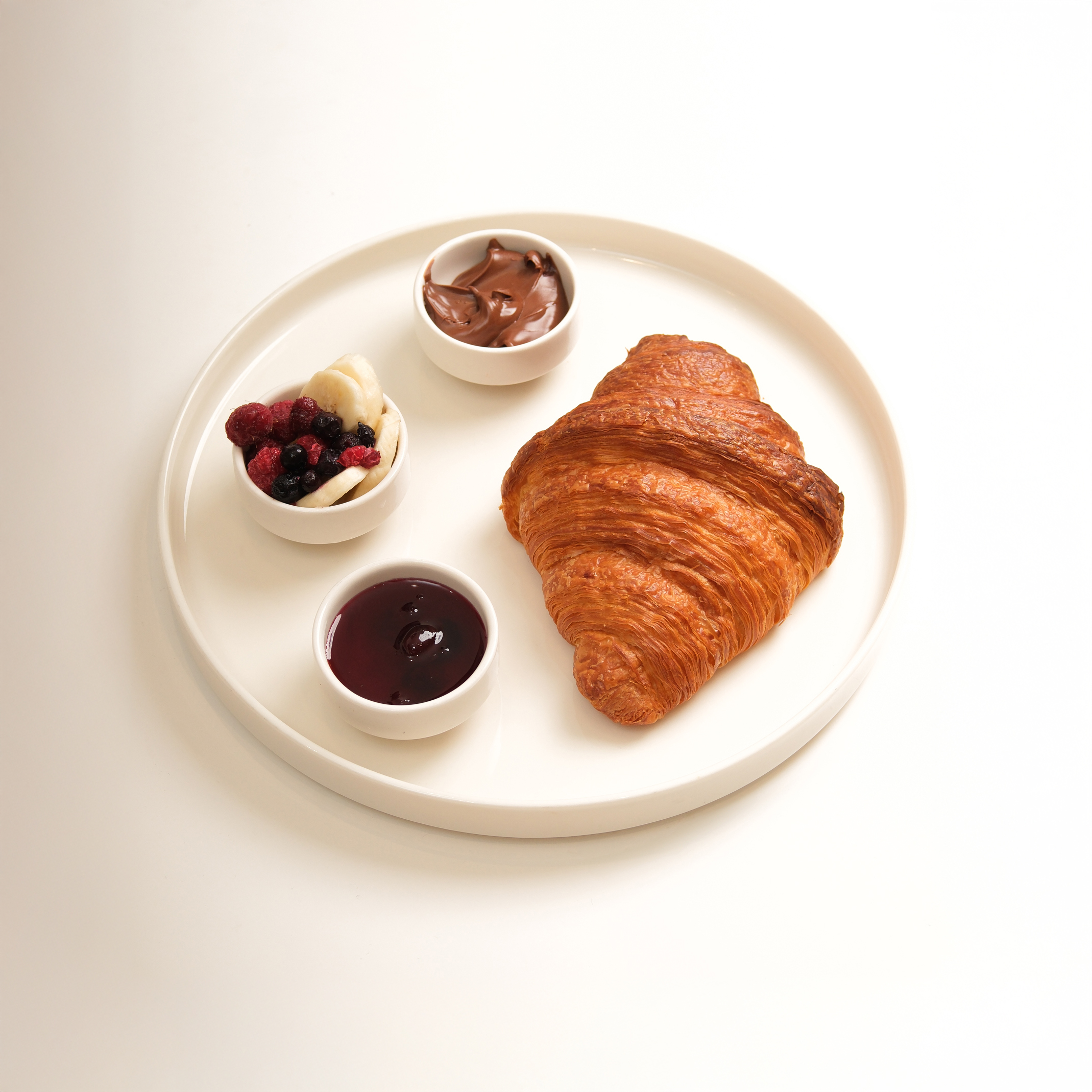 Tereyağlı kruvasan, çilek, muz, nutella, reçel