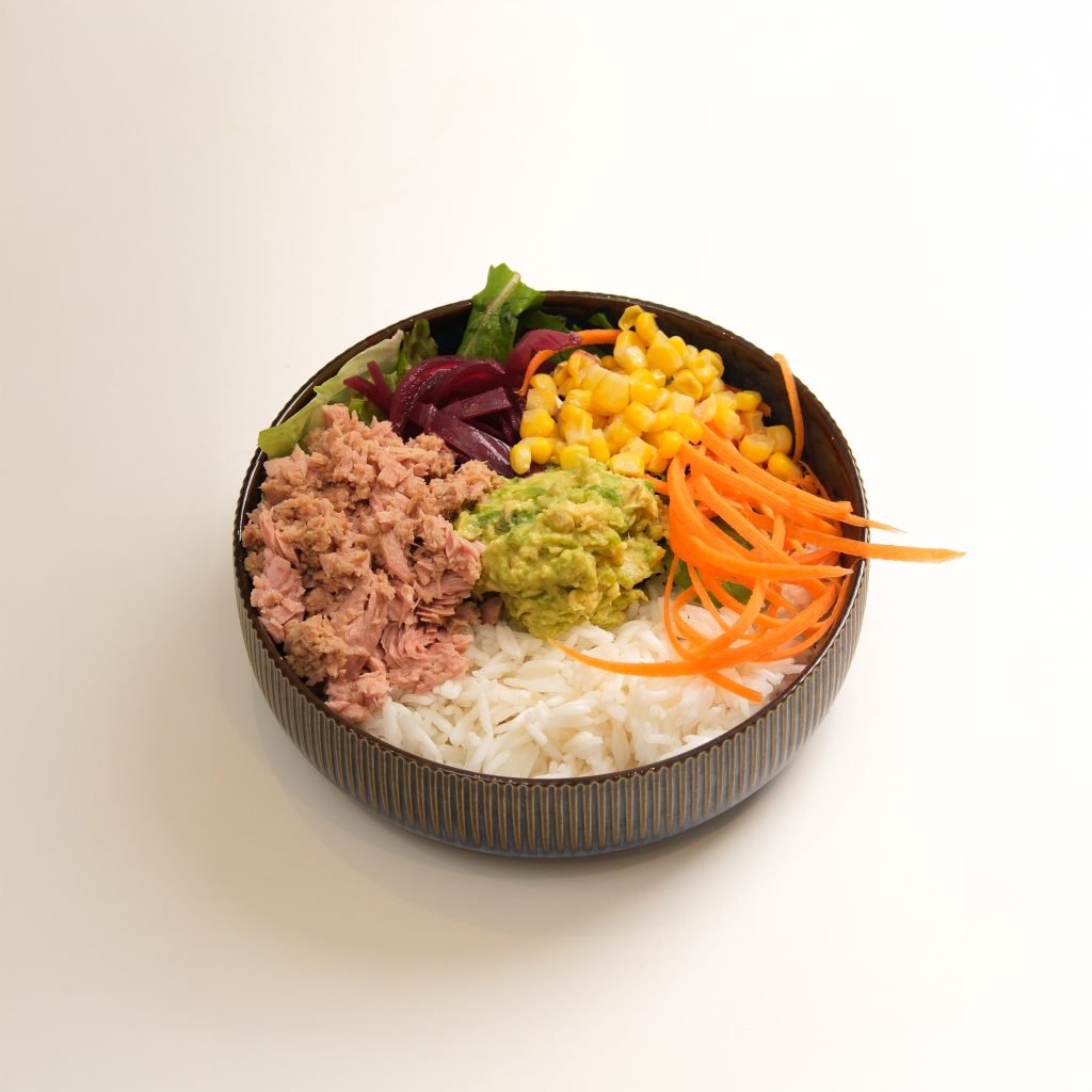 Basmati, Ton Balığı, Avokado Püresi, Havuç, Mısır, Marul, Kırmızı Soğan Turşusu
