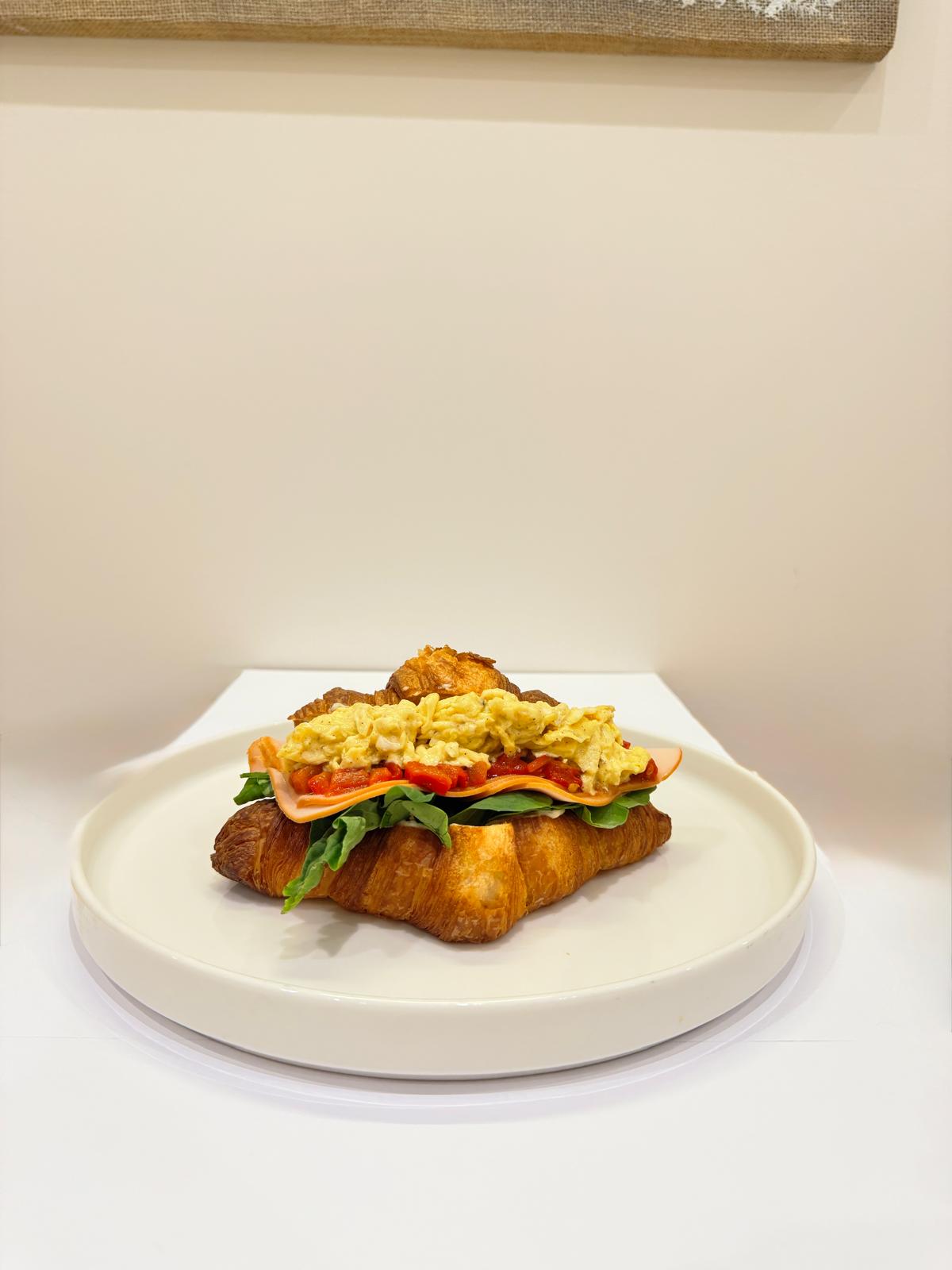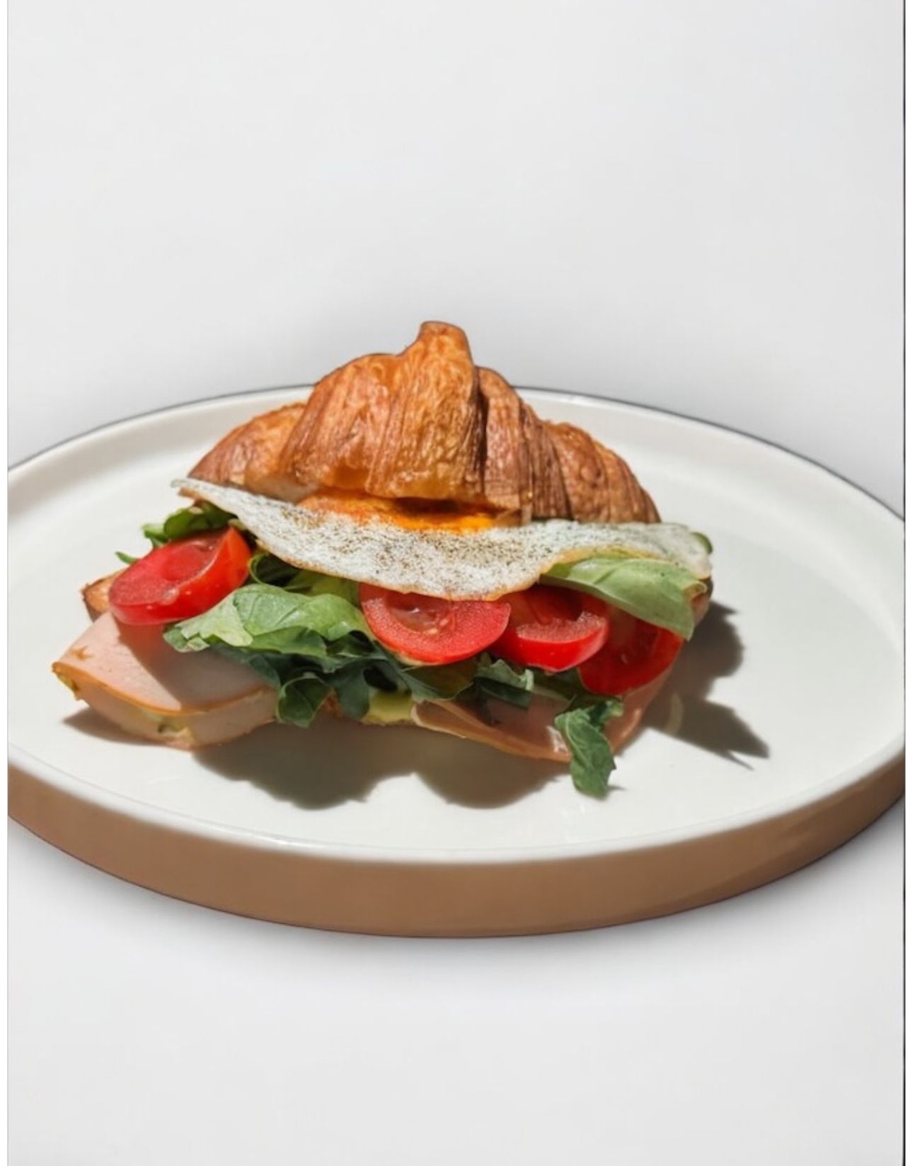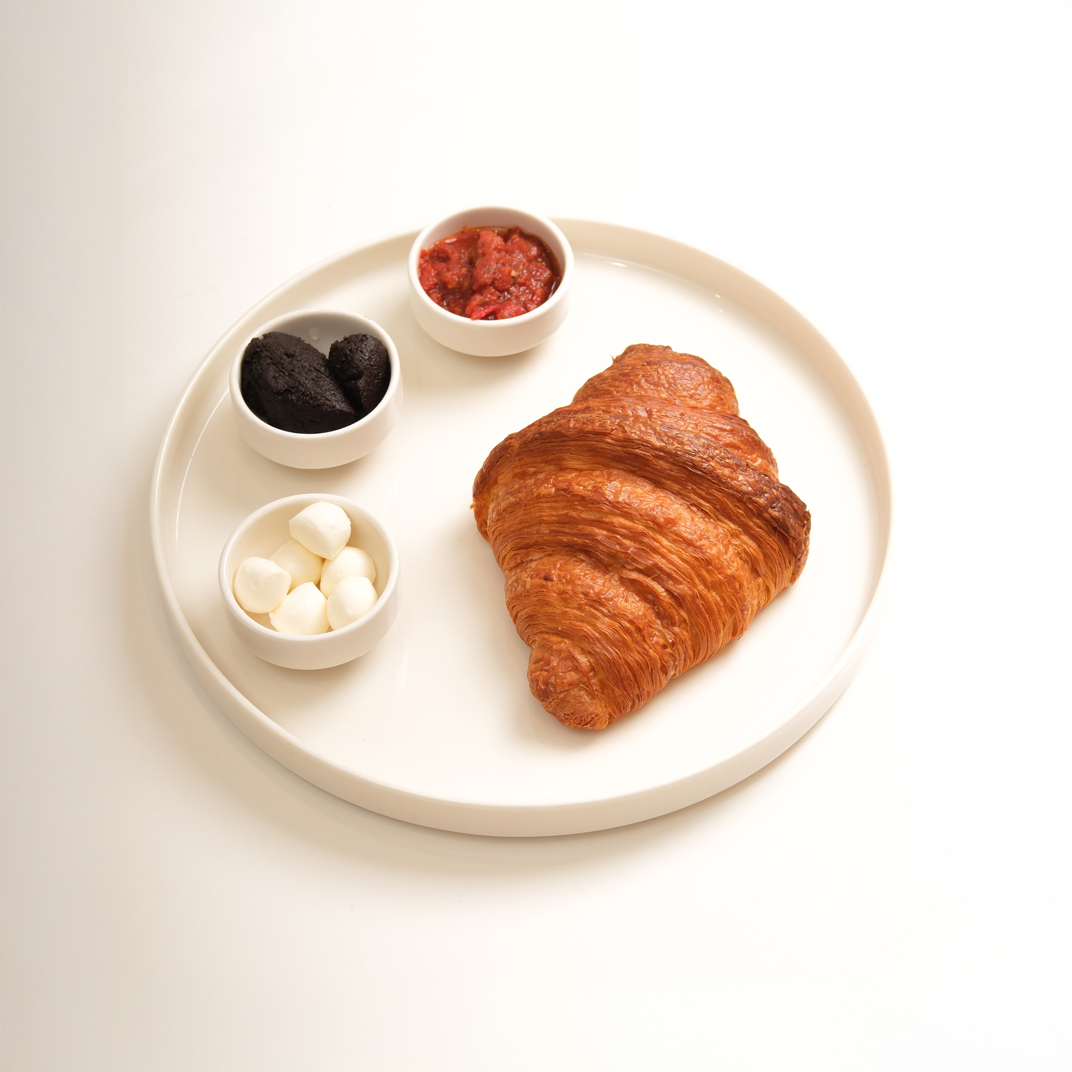 Tereyağlı kruvasan, söğüş, krem peynir, kahvaltılık sos, zeytin