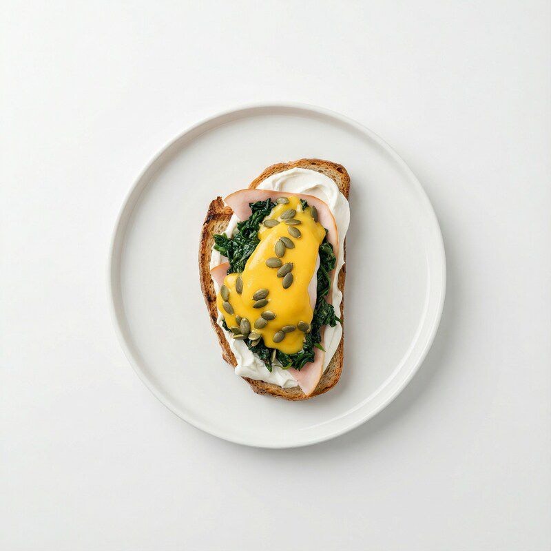 Ekşi maya ekmek üzeri krem peynir,hindi füme,sote ıspanak ,poşe yumurta ve hollandez sos