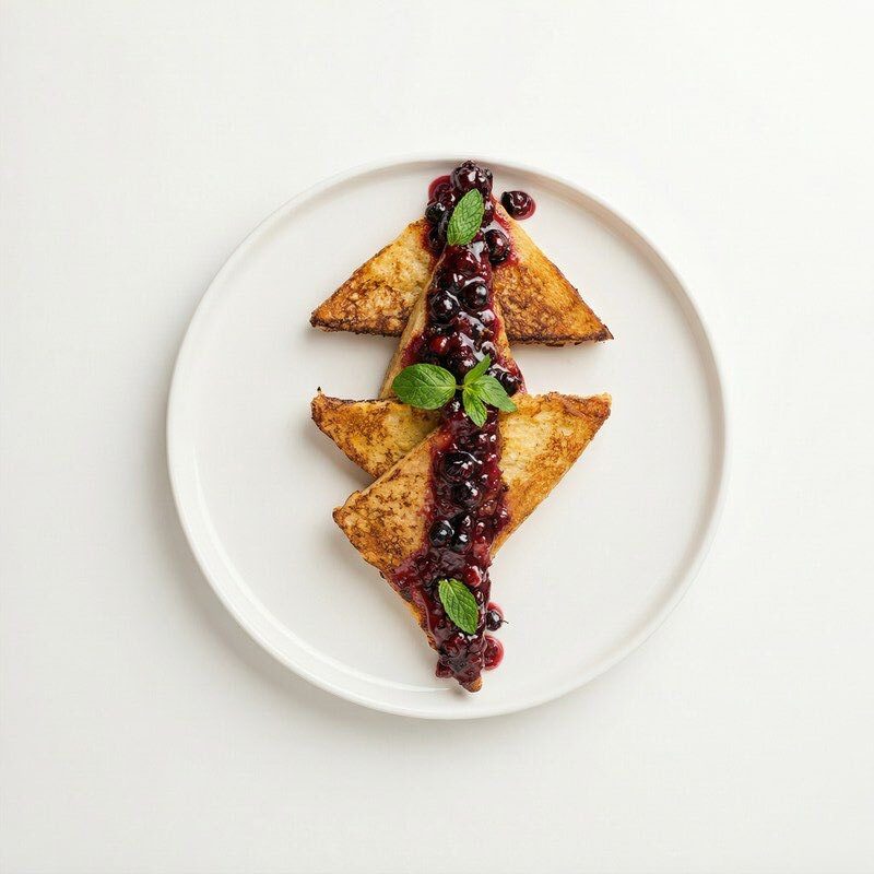 Yumurtalı ve tarçınlı harca batırılıp kızartılmış ekmek ve orman meyveli ballı sos ile servis edilir