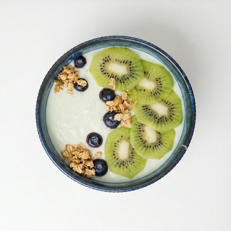 Ev yapımı ballı matchalı yoğurt,muz,kivi,ve yaban mersini