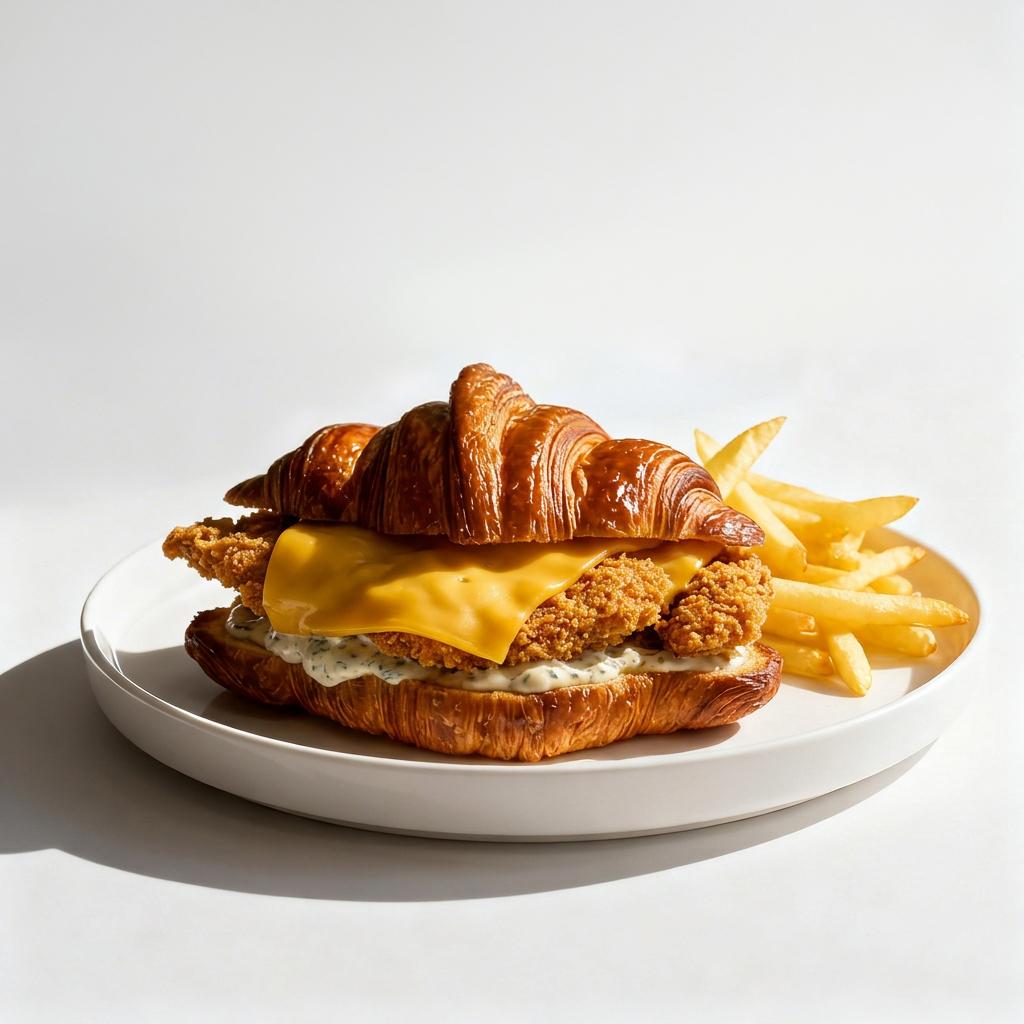Tereyağlı Kuruvasan, Tartar Sos, Cheddar Peyniri, Patates.